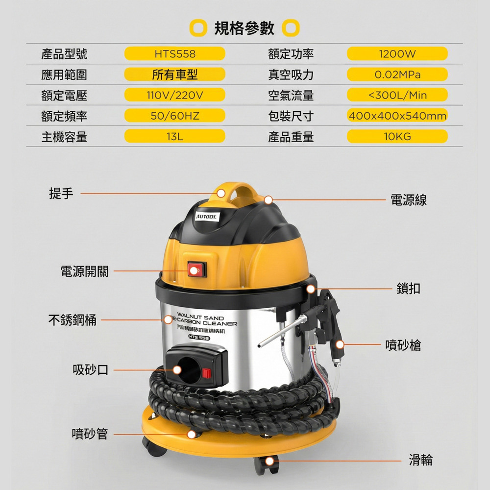 938嚴選 AUTOOL HTS558 核桃砂積碳清洗機 核桃沙機 清積碳 進氣門 進氣歧管清洗機除碳